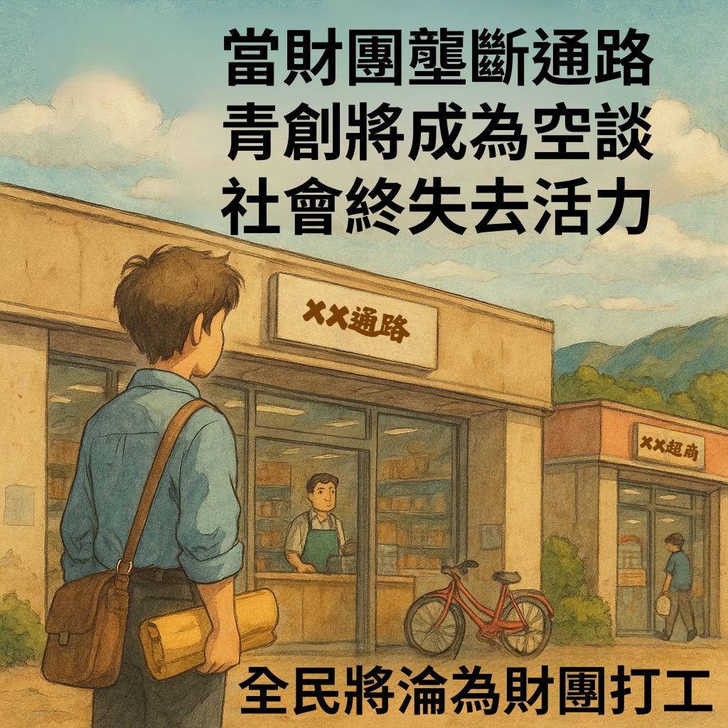 全X與7-XX等零售巨擘,在台灣擁有超過萬間門市與壟斷級市占。這些通路不再僅是「賣東西的地方」,而是成為了價格制定者、市場主導者,甚至是消費選項的決定者。對青年創業者而言,進入這些封閉的供應鏈比登天還難;而對消費者而言,看似「方便」,實則是「選項的單一化」。